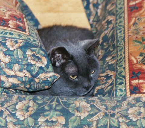 Tasha was extremely shy, so even close friends and family did not really get a chance to know her. The only people she felt comfortable around were Scott and I, and even then, she would not cuddle with us except in her “safe place” — our bed. Above is a photo of her camped out between our pillows.